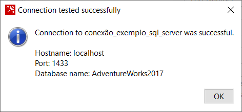 Mensagem de sucesso ao testar a conexão